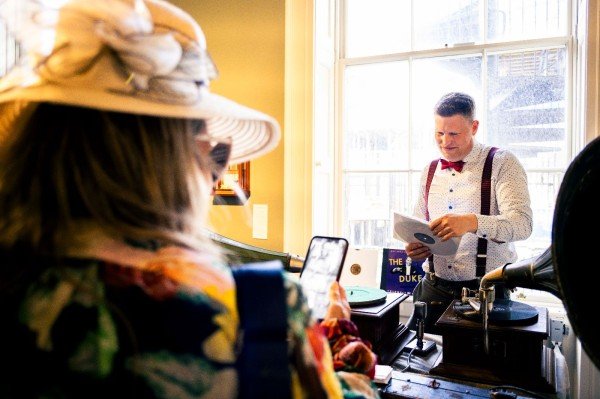 From the moment guests arrive, they’ll be enchanted by the warm crackle of old records, the elegant visuals of our period setup and the authentic charm of host Trevor Gyves dressed in 1920s attire and spinning stories along with the tunes.